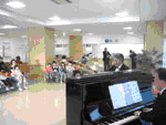 病院ボランティア「ひまわり」が主催する院内ミニコンサートです。新棟メインエントランスホールにて30分程度、合唱や楽器の演奏を行っております。音楽活動を通して、患者さんへ心安らぐ空間を提供したいというのが活動の目的です。趣旨に賛同していただける方であれば、どなたでもボランティアとして参加可能です。