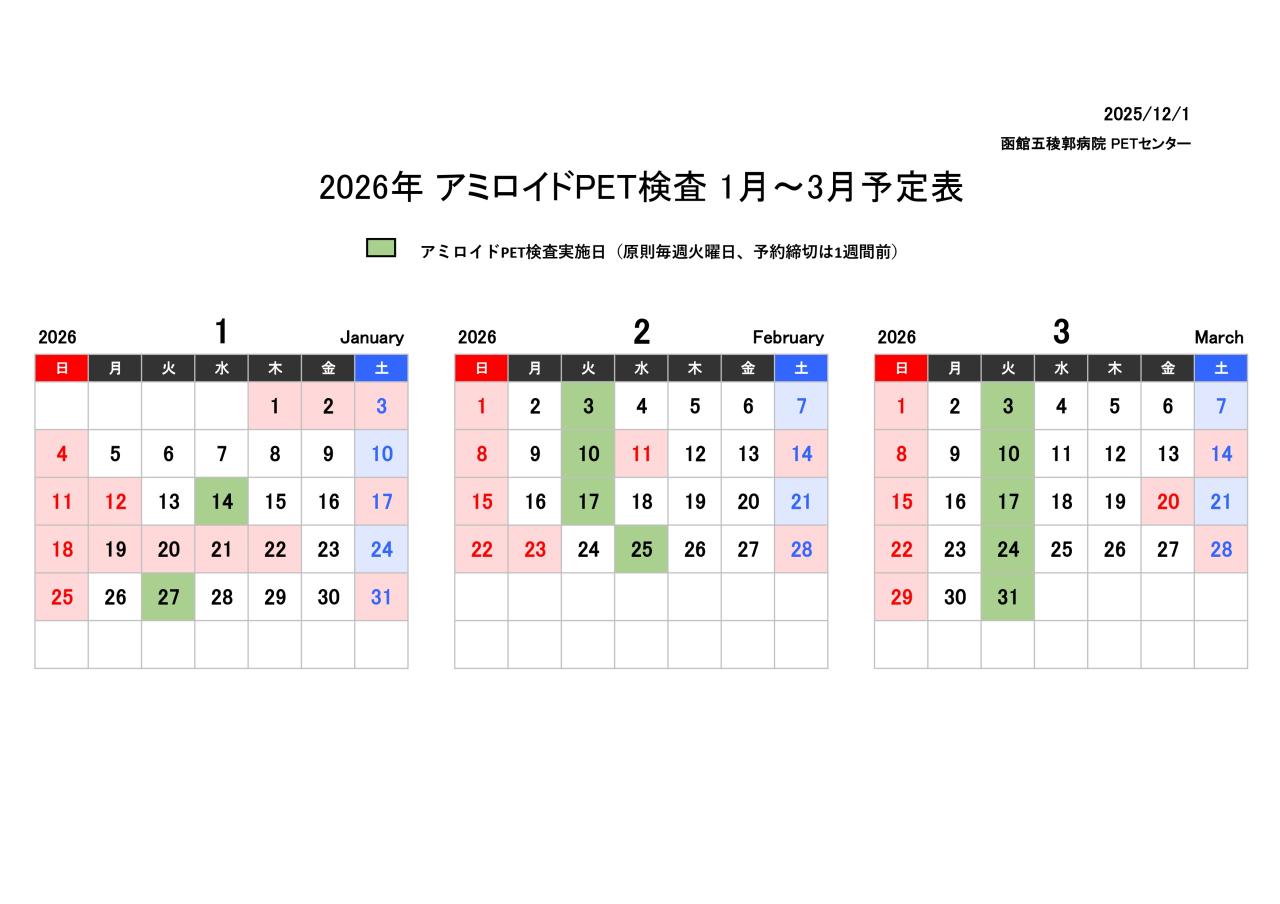 アミロイドPET検査予定表(2025年1~3月)(PDF)