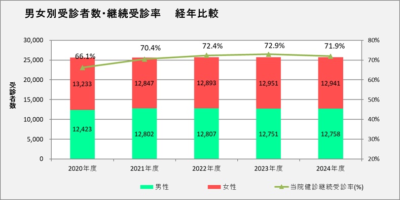 当院健康管理センターでは、年間約25,000人の方々に健康診断を受診いただいております。皆様の健康を支える指標として、当センターでは毎年詳細な統計をまとめています。
