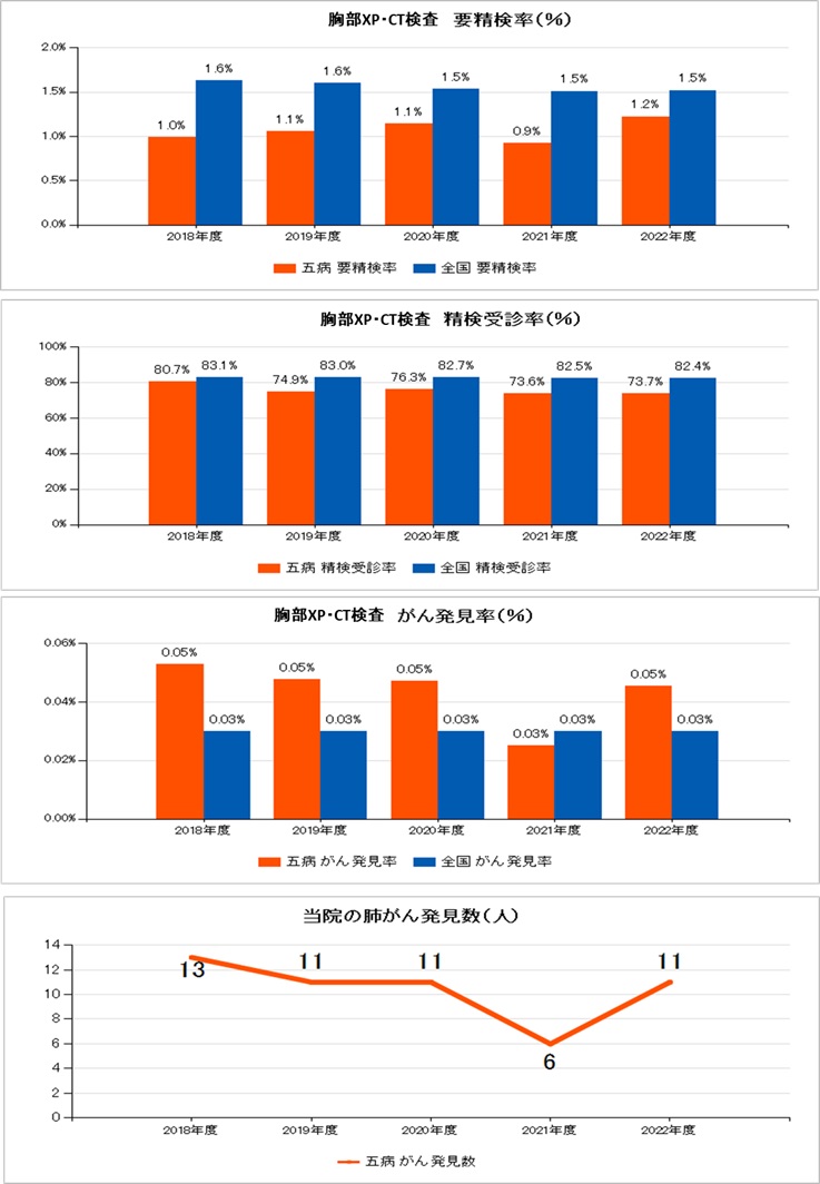 今回は、当院における「肺がん・乳がん・子宮がん・胃がん・大腸がん」の5つのがん検診に焦点を当て、要精検率や実際のがん発見率などのデータを公開いたします。数値を通じて、検診がどのように早期発見に結びついているのか、その実態を詳しく見ていきましょう。