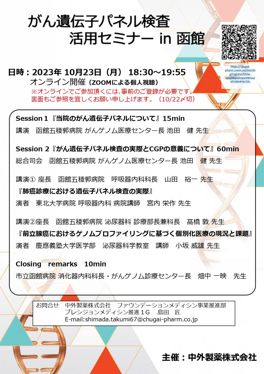【WEB講演会】がん遺伝子パネル検査 活用セミナー in 函館(開催日:2023年10月23日)のお知らせ